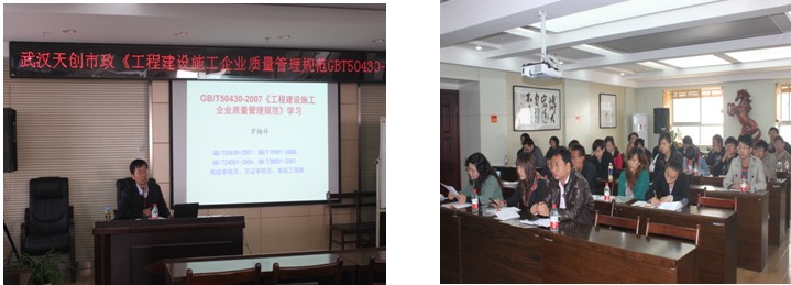 天創(chuàng)公司于2011年11月17日,在閩東國際26樓大會議室,邀請北京大陸航星體系認證有限公司的高級審核員羅煥祥老師,對我公司進行了《工程建設(shè)施工企業(yè)質(zhì)量管理規(guī)范》GB/T50430相關(guān)知識的專題培訓(xùn)。