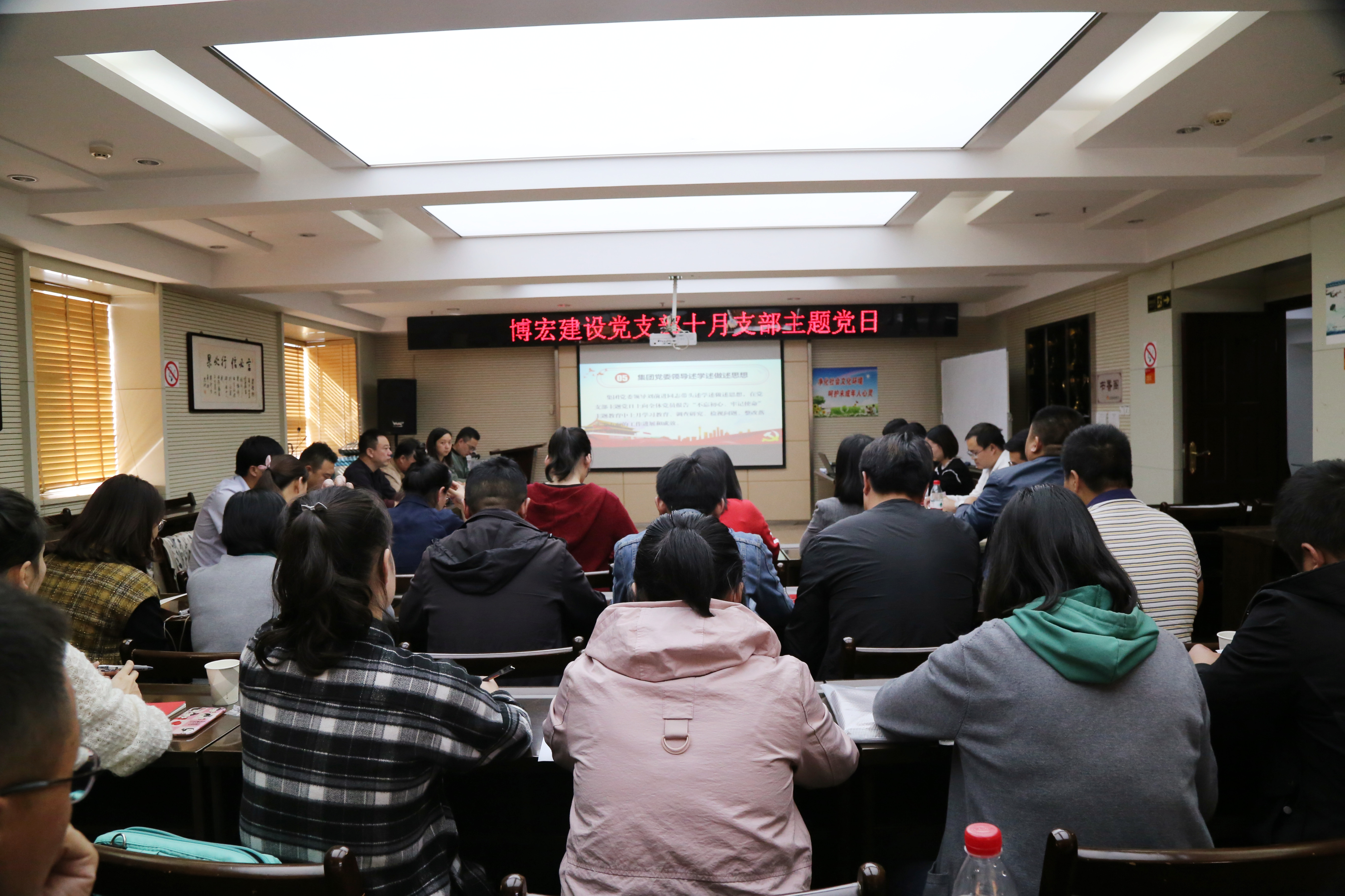 ? ? ? 為扎實開展“不忘初心、牢記使命”主題教育工作,全面把握守初心、擔(dān)使命、找差距、抓落實的總要求,10月31日,博宏建設(shè)黨支部在公司大會議室召開了以“述學(xué)述做述思想,發(fā)揮黨員先鋒模范作用”為主題的黨日活動。此次活動包含黨委成員工作匯報、黨員同志學(xué)習(xí)交流、習(xí)總書記重要講話精神學(xué)習(xí)以及觀看警示教育宣傳片等四個環(huán)節(jié)。