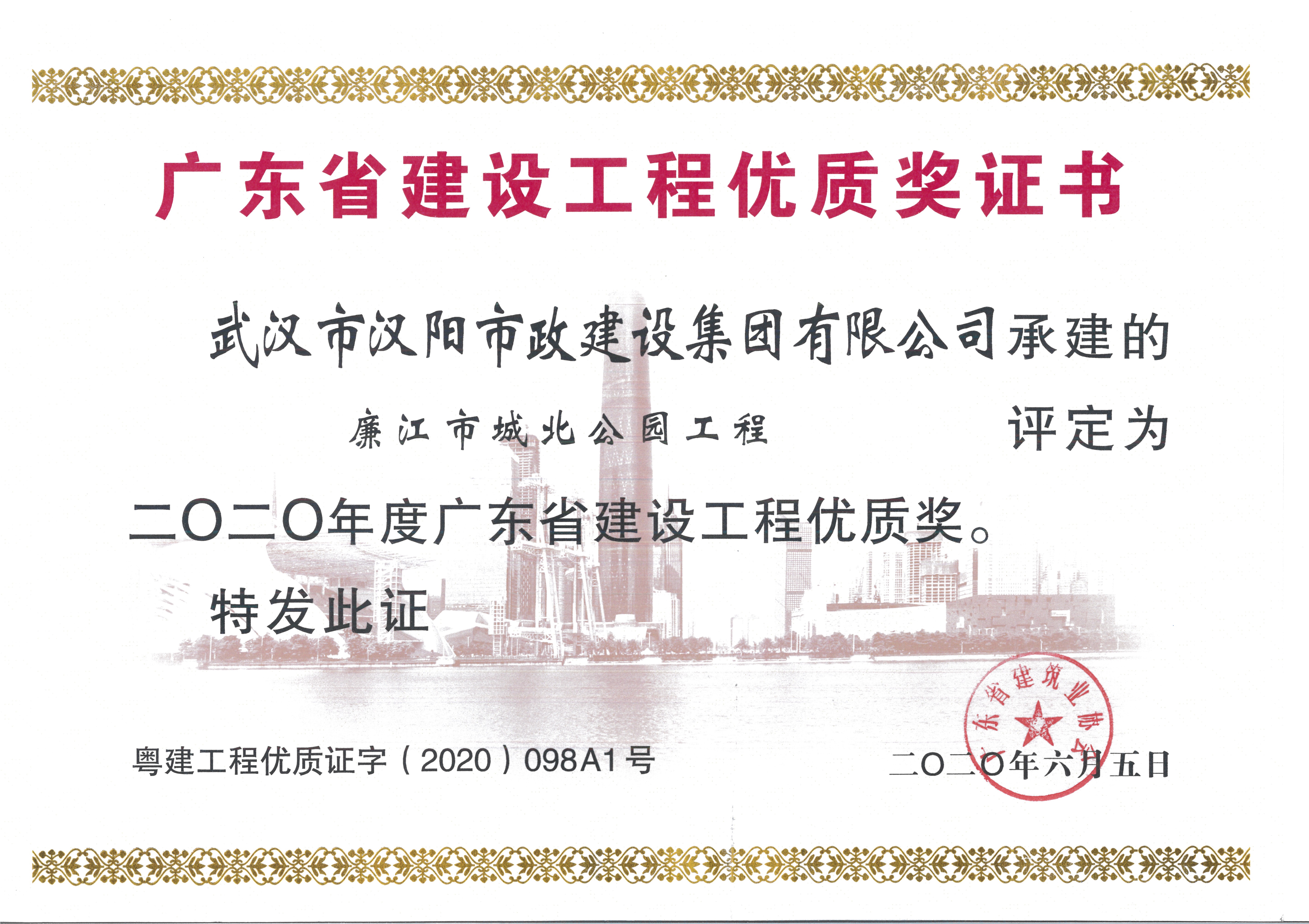 近日,廣東省建筑業(yè)協(xié)會(huì)公布了《2020年度廣東省建設(shè)工程優(yōu)質(zhì)獎(jiǎng)名單》,由漢陽市政承建的廉江市城北公園工程,榮獲廣東省建設(shè)工程優(yōu)質(zhì)獎(jiǎng),此次獲獎(jiǎng)是漢陽市政在省外獲得的最高工程獎(jiǎng)項(xiàng)。