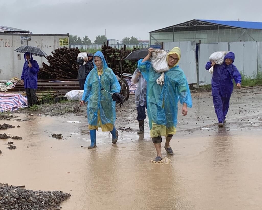 ? ? ? 危機(jī)面前,博宏公司常務(wù)副總經(jīng)理蘇琦緊急趕赴仙桃,迅速組織管理人員及工人近百人,調(diào)用大小挖機(jī)十余臺(tái),全力以赴冒雨搶險(xiǎn),開展防汛救災(zāi)。為堵住決口,搶險(xiǎn)隊(duì)員冒著大雨扛著重達(dá)50余斤的土石袋,奔走在泥濘不堪的河堤上。隨著一袋袋土石運(yùn)到堤壩上,隊(duì)員們手拉肩扛用生命筑起“生命之堤”,暫時(shí)擋住了洶涌的洪水。但隊(duì)員們沒有時(shí)間休憩,為了徹底堵住決口,必須用鋼管加固河堤,現(xiàn)場(chǎng)人員又連夜焊接搬運(yùn)鋼管,爭分奪秒堵堤搶險(xiǎn)。搶險(xiǎn)隊(duì)員們眾志成城,萬眾一心,奮戰(zhàn)至7日凌晨1點(diǎn),最終用鋼板堵住了決口處,險(xiǎn)情終于得到緩解。