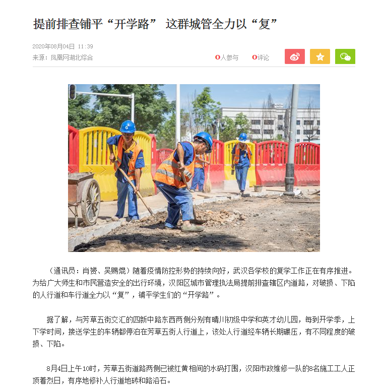 ? ? ? 近日,漢陽市政維修一隊負(fù)責(zé)的漢陽區(qū)內(nèi)日常道路維修工作,先后受到漢陽知音、鳳凰網(wǎng)湖北綜合、長江日報等主流媒體的一致好評。此前,漢陽市政維修一隊道路維修工作也曾多次獲媒體正面報道。