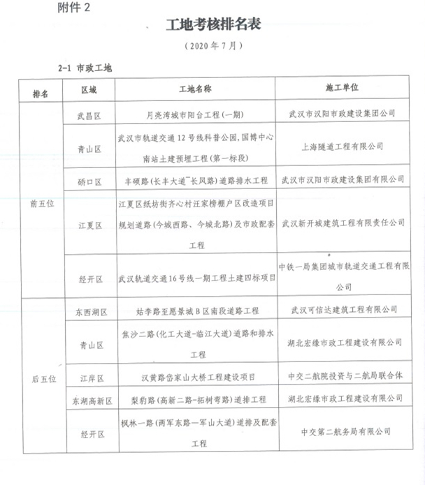 在武漢市城鄉(xiāng)建設(shè)局組織的7月份建筑與市政工程安全文明施工考評活動中,漢陽市政月亮灣城市陽臺項目以標(biāo)準(zhǔn)化的安全配套設(shè)施及系統(tǒng)化的管理模式,在全市90個市政工地中脫穎而出,榮獲全市市政工程安全文明施工排名第一的優(yōu)異成績!同時,在武漢城投集團(tuán)組織的7月份精細(xì)化檢查活動中,月亮灣城市陽臺項目以最高分的成績摘得桂冠,成為全市市政工程的施工典范!