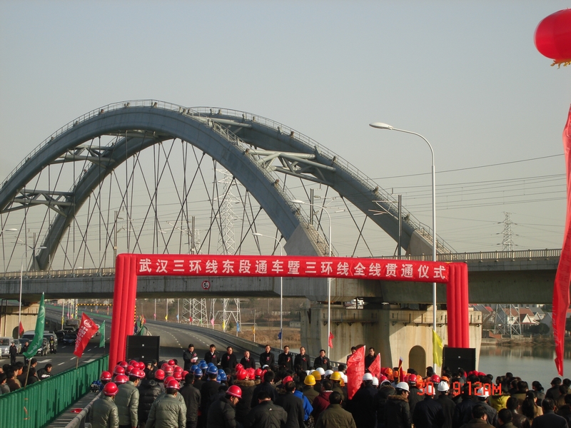 12月30日上午9時,長達(dá)9.64公里的武漢三環(huán)線東段(青化立交——老武黃公路)建成通車。至此,武漢三環(huán)線全線貫通。省市領(lǐng)導(dǎo)段輪一、阮成發(fā)、葉金生、劉家棟等出席通車儀式。集團(tuán)公司相關(guān)領(lǐng)導(dǎo)及我公司分管該工程的領(lǐng)導(dǎo)率領(lǐng)公司20余人一同參加了本次通車典禮。