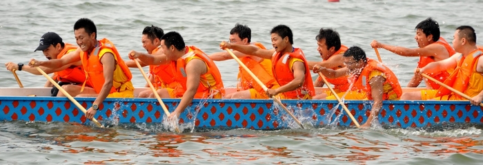 比賽當(dāng)天,經(jīng)過(guò)短暫的熱身后,比賽正式拉開(kāi)帷幕。我公司參賽隊(duì)伍在鼓手李文華的指揮下,同心協(xié)力,奮勇向前。大家和著整齊的號(hào)子,用力地劃著槳,個(gè)個(gè)揮汗如雨,人人精神飽滿,看臺(tái)上的同事高聲吶喊,吹笛加油。經(jīng)過(guò)緊張的角逐,我公司參賽隊(duì)伍以小組第二名的成績(jī)順利進(jìn)入半決賽。