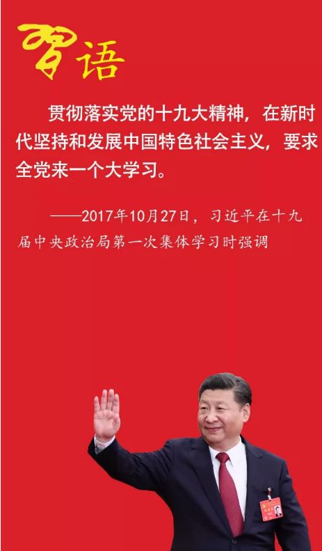 在每一個重大轉(zhuǎn)折時期,面對新形勢新任務(wù),我們黨總是號召全黨同志加強(qiáng)學(xué)習(xí);而每次這樣的學(xué)習(xí)熱潮,都能推動黨和人民事業(yè)實(shí)現(xiàn)大發(fā)展大進(jìn)步。黨的十九大,是在全面建成小康社會決勝階段、中國特色社會主義進(jìn)入新時代的關(guān)鍵時期召開的一次十分重要的大會,提出了許多新理念、新論斷,確定了許多新任務(wù)、新舉措,特別是確立了習(xí)近平新時代中國特色社會主義思想的指導(dǎo)地位,制定了新時代中國特色社會主義的行動綱領(lǐng)和發(fā)展藍(lán)圖,進(jìn)一步指明了黨和國家事業(yè)前進(jìn)方向。要使黨的十九大精神成為推動黨和國家事業(yè)發(fā)展的強(qiáng)大思想武器,把黨的十九大提出的各項目標(biāo)任務(wù)落到實(shí)處,就需要在全黨來一次大學(xué)習(xí)。歷史證明,全黨學(xué)習(xí)的過程就是思想統(tǒng)一的過程、行動看齊的過程、力量凝聚的過程、事業(yè)推進(jìn)的過程。