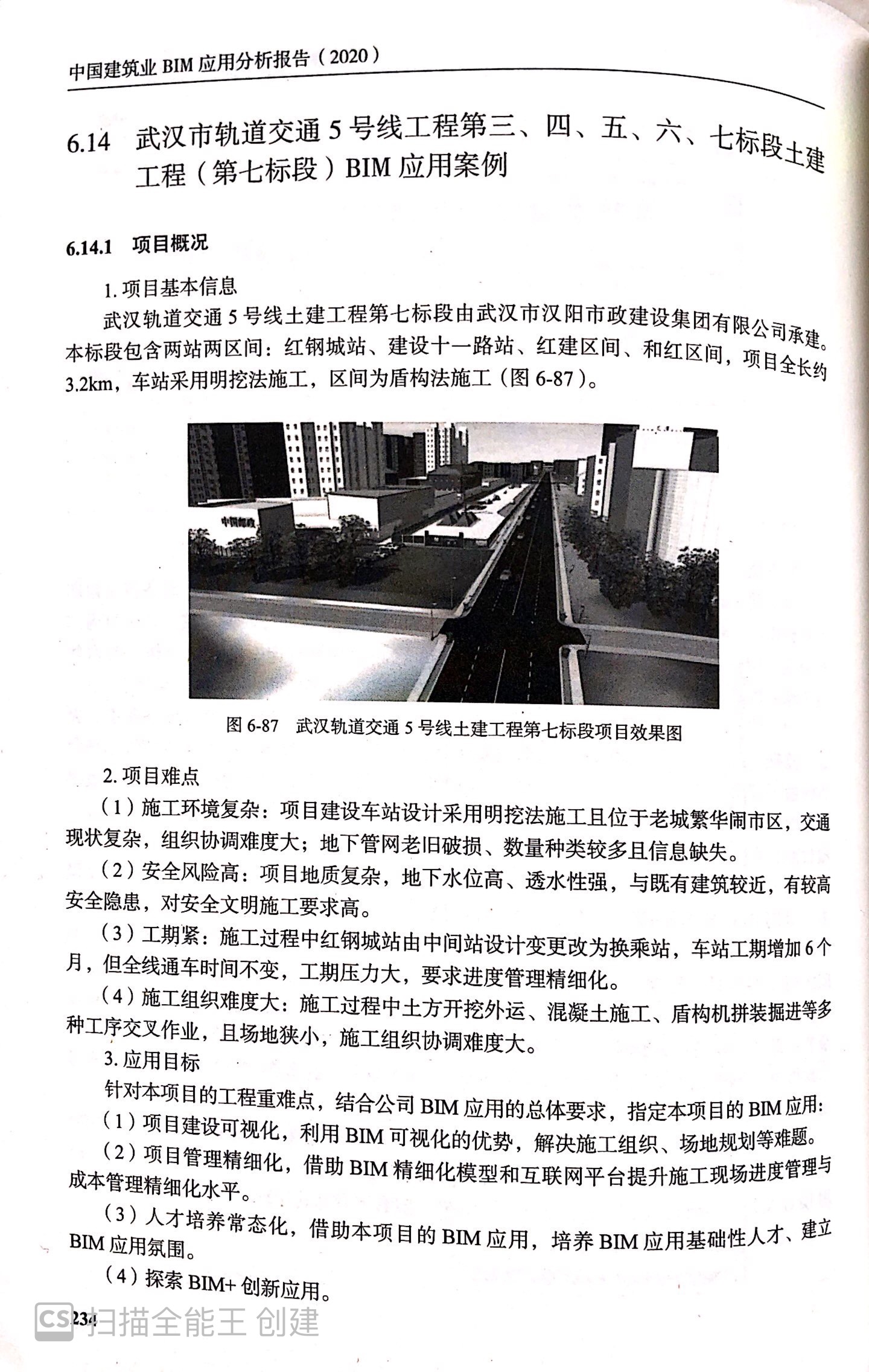 《報告》第6章BIM技術應用典型案例匯編章節(jié)中,以漢陽市政四公司承建的“武漢市軌道交通5號線第七標段土建工程BIM技術應用成果”為典型案例,進行展示與分析。此章節(jié)從項目概況、BIM應用方案、BIM實施過程、BIM應用效果總結四個方面,對5.7標項目BIM技術應用情況進行了全面且詳細的介紹。