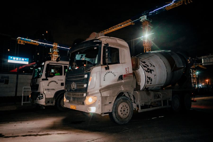凌晨,在中南科研設(shè)計(jì)中心項(xiàng)目的施工現(xiàn)場(chǎng),燈火通明,工人們正在有序工作。
