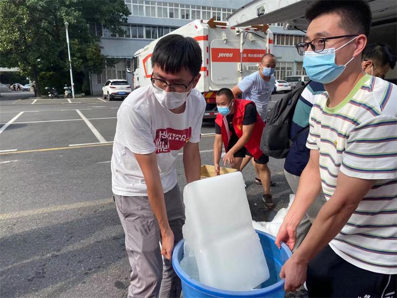 機(jī)關(guān)支部黨員在國棉社區(qū)搬運(yùn)冰塊