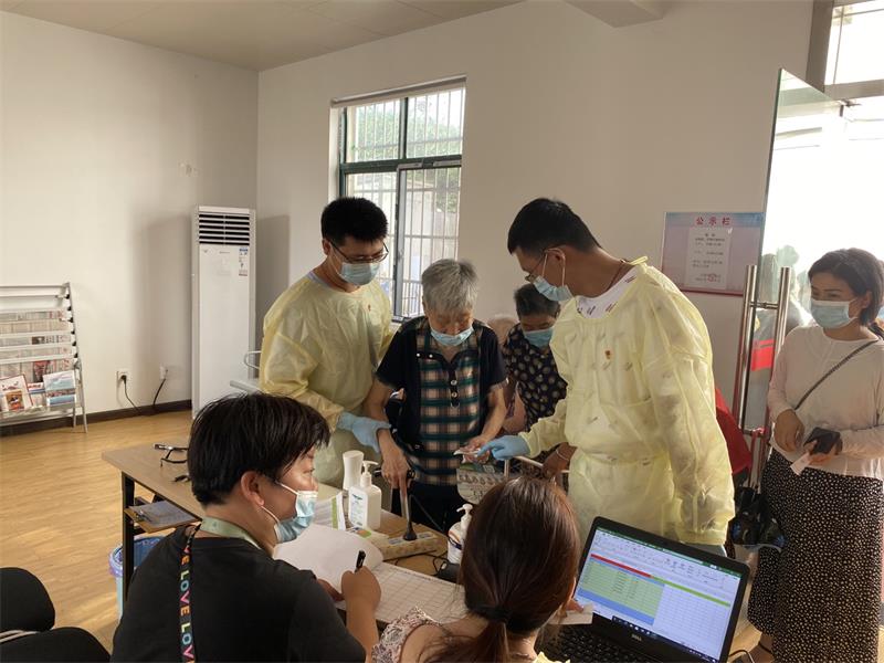 五公司支部黨員來到江花社區(qū)漢泰苑工作站,該社區(qū)老年人較多,下沉黨員主要負(fù)責(zé)幫助維持現(xiàn)場秩序和指引,并協(xié)助老年人做好核酸檢測的登記工作。