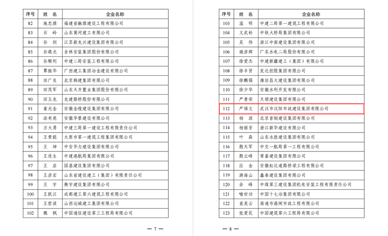 近日,中國施工企業(yè)管理協(xié)會傳來好消息,漢陽市政黨委書記、董事長嚴悌文榮獲“2021年工程建設(shè)誠信企業(yè)家”,漢陽市政七公司總工程師羅艷明榮獲“2021年工程建設(shè)誠信項目經(jīng)理”。