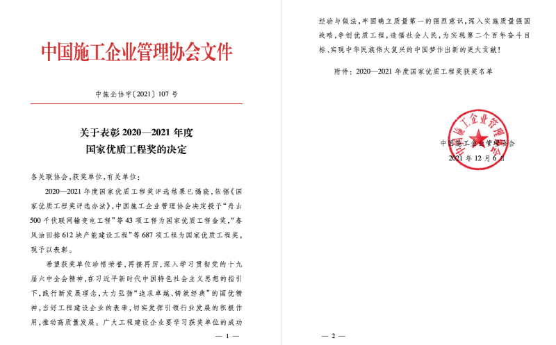 12月7日,中國施工企業(yè)管理協(xié)會發(fā)布2020-2021年度第二批國家優(yōu)質(zhì)工程獎名單,漢陽市政承建的東湖綠道二期工程、金山大道工程、武漢食品檢驗中心工程、武漢軌道交通七號線工程共4個項目獲此殊榮,獲獎數(shù)量創(chuàng)歷史新高。今年獲評項目首次覆蓋園林、橋梁、軌道交通、房建四大專業(yè)領域,公司房建項目在“國家優(yōu)質(zhì)工程獎”實現(xiàn)零的突破。截止目前,漢陽市政已累計榮獲10項“國家優(yōu)質(zhì)工程獎”。