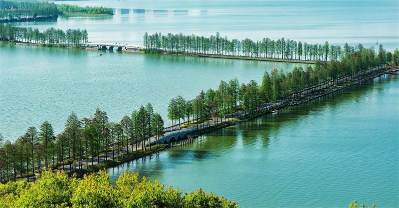 東湖綠道二期是國內(nèi)首條城區(qū)5A級旅游景區(qū)綠道,定位為世界級環(huán)湖綠道,致力于建設東湖城市生態(tài)綠心,傳承楚風漢韻,打造世界級城中湖典范。工程位于武漢市東湖旅游風景區(qū)內(nèi),環(huán)繞湯菱湖、后湖,串聯(lián)馬鞍山森林公園和白馬景區(qū)。總長約58公里。包含湖澤道等4條主題綠道,建設內(nèi)容包括:道路、景觀、橋梁、園林綠化、驛站及智慧綠道系統(tǒng)工程等。項目總投資約30.6億元,于2017年6月15日正式開工建設,2018年4月28日通過驗收并投入使用。
