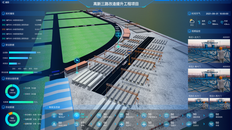 項(xiàng)目以“人工智能應(yīng)用”為主,以“大數(shù)據(jù)智能化”為引領(lǐng),構(gòu)建“智慧交通、智慧橋梁、智慧水務(wù)、智慧管網(wǎng)、智慧路燈”五大智慧工程。項(xiàng)目以BIM+GIS技術(shù)打造的高精度數(shù)字模型為依托,采用預(yù)制裝配式連續(xù)結(jié)構(gòu)及智能機(jī)械化設(shè)備,讓智慧建造推動(dòng)項(xiàng)目建設(shè)智能、高效。項(xiàng)目創(chuàng)新應(yīng)用“項(xiàng)目協(xié)同管理平臺(tái)”、“智慧梁場系統(tǒng)”,延伸“項(xiàng)目信息化辦公平臺(tái)”,打造工地智慧運(yùn)維大腦。