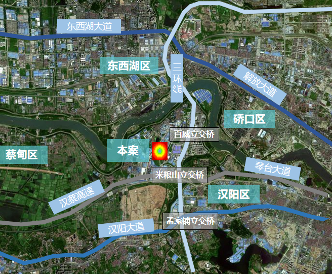 該地塊位于漢陽(yáng)區(qū)黃金口工業(yè)園金磚路與黃金口大道交叉口東南角,北臨金磚路,西臨黃金口大道,南側(cè)和東側(cè)為待開(kāi)發(fā)空地,雙干道交匯,交通便利,臨近三環(huán)線和漢蔡高速。