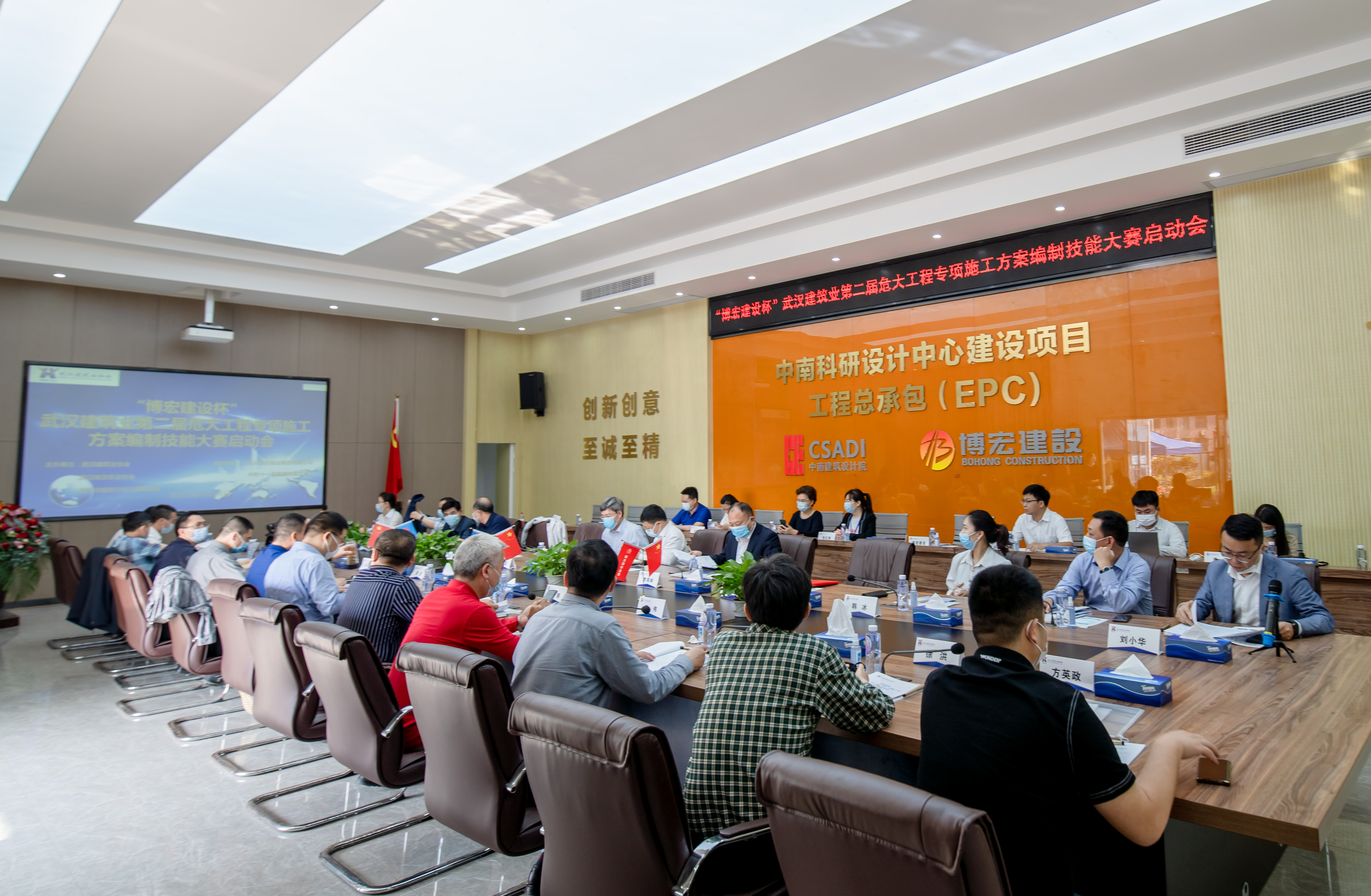 2022年4月24日上午,由武漢建筑業(yè)協(xié)會主辦的“博宏建設(shè)杯”武漢建筑業(yè)第二屆危大工程專項施工方案編制技能大賽啟動儀式在漢陽市政承建的中南科研設(shè)計中心項目部舉行。武漢市總工會、武漢市建筑行業(yè)工會聯(lián)合會負(fù)責(zé)人韓冰,武漢建筑業(yè)協(xié)會副會長劉慶等主辦方相關(guān)領(lǐng)導(dǎo),武漢建筑業(yè)協(xié)會會員單位工程師、專家及教授共同出席本次活動。