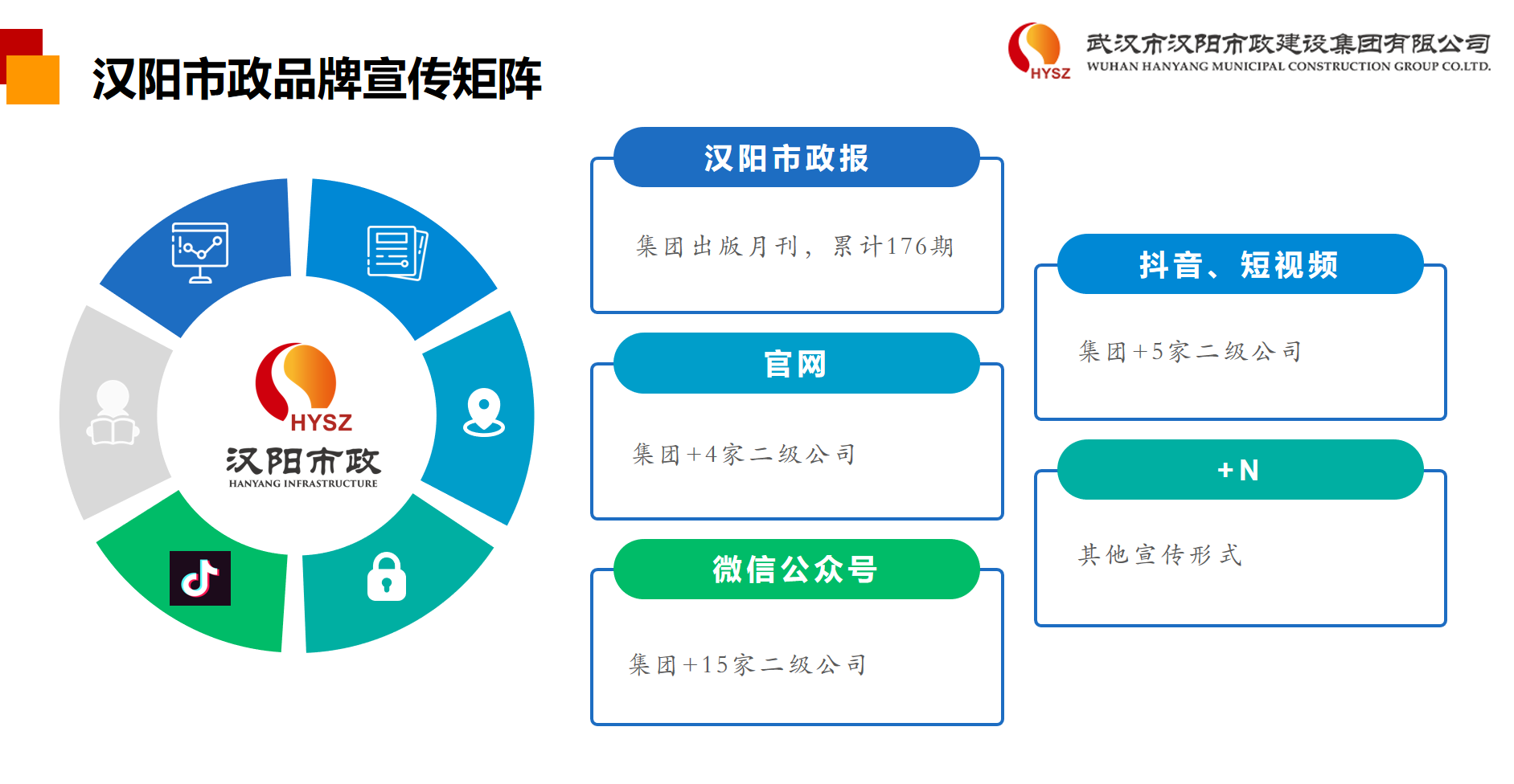 長期以來,公司品牌文化建設(shè)工作推陳出新,漢陽市政報、官方網(wǎng)站、微信公眾號、抖音企業(yè)號、微信視頻號“5+N”傳播矩陣持續(xù)夯實,現(xiàn)已形成“1+15”的微信矩陣,“1+4”網(wǎng)站矩陣和“1+5”的抖音矩陣。集團(tuán)《漢陽市政報》連續(xù)四年獲評中施企協(xié)精品報刊;集團(tuán)微信公眾號獲評中施企協(xié)精品公眾號、全國建筑業(yè)優(yōu)秀微信公眾號、湖北省建筑行業(yè)優(yōu)秀公眾號、湖北十佳政務(wù)新媒體(城建);集團(tuán)官方網(wǎng)站獲評中施企協(xié)精品網(wǎng)站,訪問量持續(xù)增長,品牌傳播力度不斷加強(qiáng)。