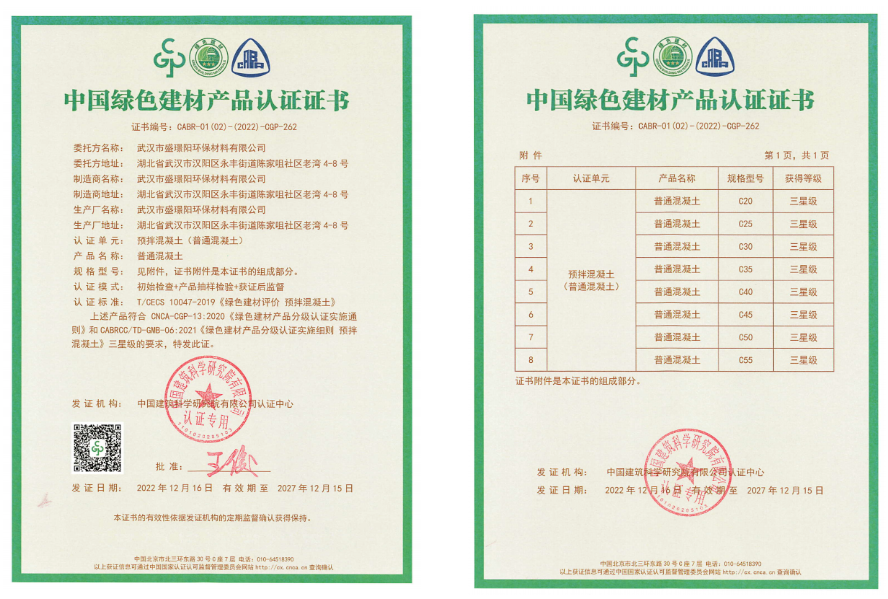 ? ? 近日,喜報傳來,漢陽市政盛璟陽公司順利通過評審程序,相繼取得了“三星預(yù)拌混凝土綠色生產(chǎn)評價證書”及“綠色建材三星認(rèn)證證書”,成為一家榮獲“綠色生產(chǎn)+綠色建材”雙三星認(rèn)證企業(yè)。