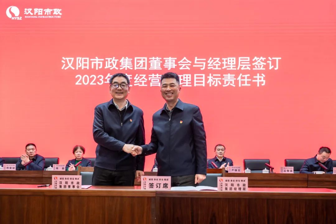 漢陽市政集團(tuán)董事會與經(jīng)理層簽訂2023年度經(jīng)營管理目標(biāo)責(zé)任書。