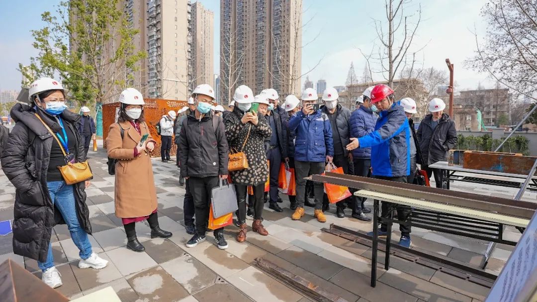此次觀摩活動,武昌生態(tài)文化長廊項目通過現(xiàn)場實(shí)物和展板結(jié)合的形式,對項目采用的輕鋼龍骨框架、廢舊鐵軌利用、花崗巖跳色拼裝、彩色陶瓷顆粒透水路面、全套管全回轉(zhuǎn)鉆機(jī)樁基施工、鐵軌彎弧施工等精細(xì)化施工工藝進(jìn)行了展示。觀摩過程中,與會人員對現(xiàn)場實(shí)施的技術(shù)工藝表現(xiàn)出了極大的興趣,并和現(xiàn)場技術(shù)人員進(jìn)行了熱烈的交流討論。