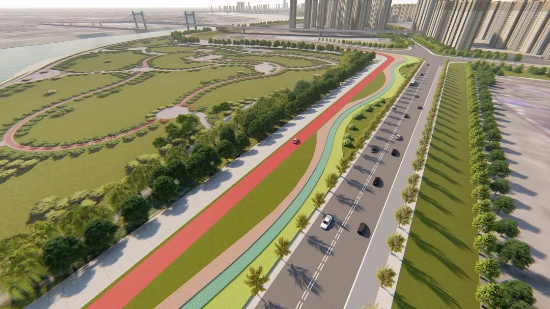 漢江南岸綜合治理EPC工程綜合防洪、景觀、市政等功能為一體,主要包含知音大道建設、防洪工程改造及漢水碧道工程三個板塊。完工后將串聯起過江橋梁,有效承擔沿江交通分流作用,并與長江沿岸的楊泗港都市T臺一同打造全市最長、景觀最美的濱江景觀廊道。落實“長江大保護”,突出水、岸、灘、城、人和諧共生的有機載體目標。