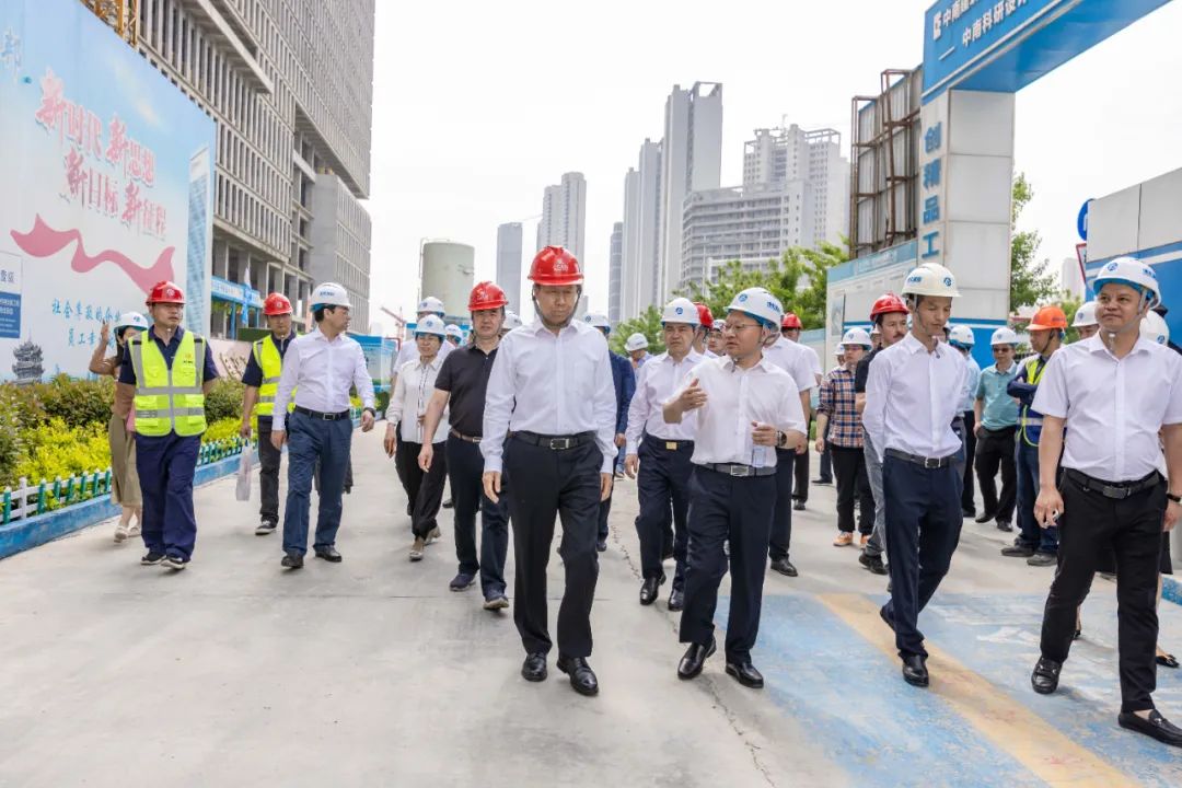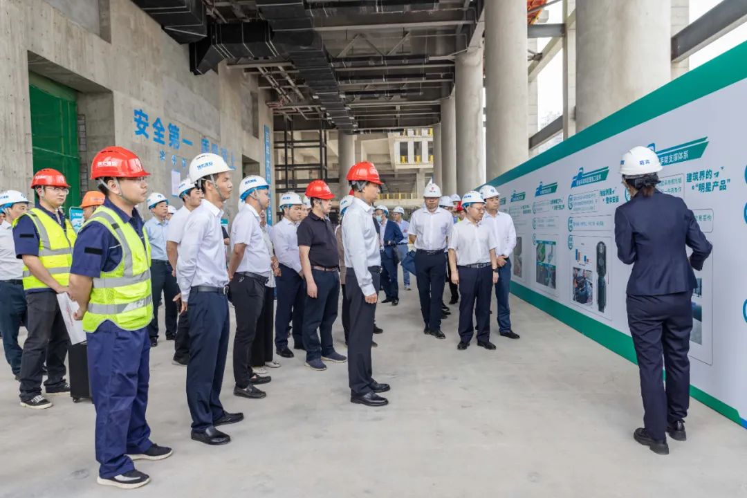 劉雪榮一行實地考察了中南科研設計中心施工現(xiàn)場,通過講解互動和實地觀摩,全方位了解了項目在新技術應用、安全質量管控、標準化建設、智能化管理等方面的亮點與成效。調研組對施工現(xiàn)場BIM信息技術應用、構件二維碼上墻等創(chuàng)新舉措表示認可,充分肯定項目通過物聯(lián)網(wǎng)設備實時采集環(huán)境數(shù)據(jù),太陽能供電系統(tǒng)、盤扣支架通道,消防水系統(tǒng)與照明系統(tǒng)永臨結合等環(huán)保舉措,希望項目團隊繼續(xù)攻堅克難,為推動武漢打造“工程設計之都”作出更大貢獻。