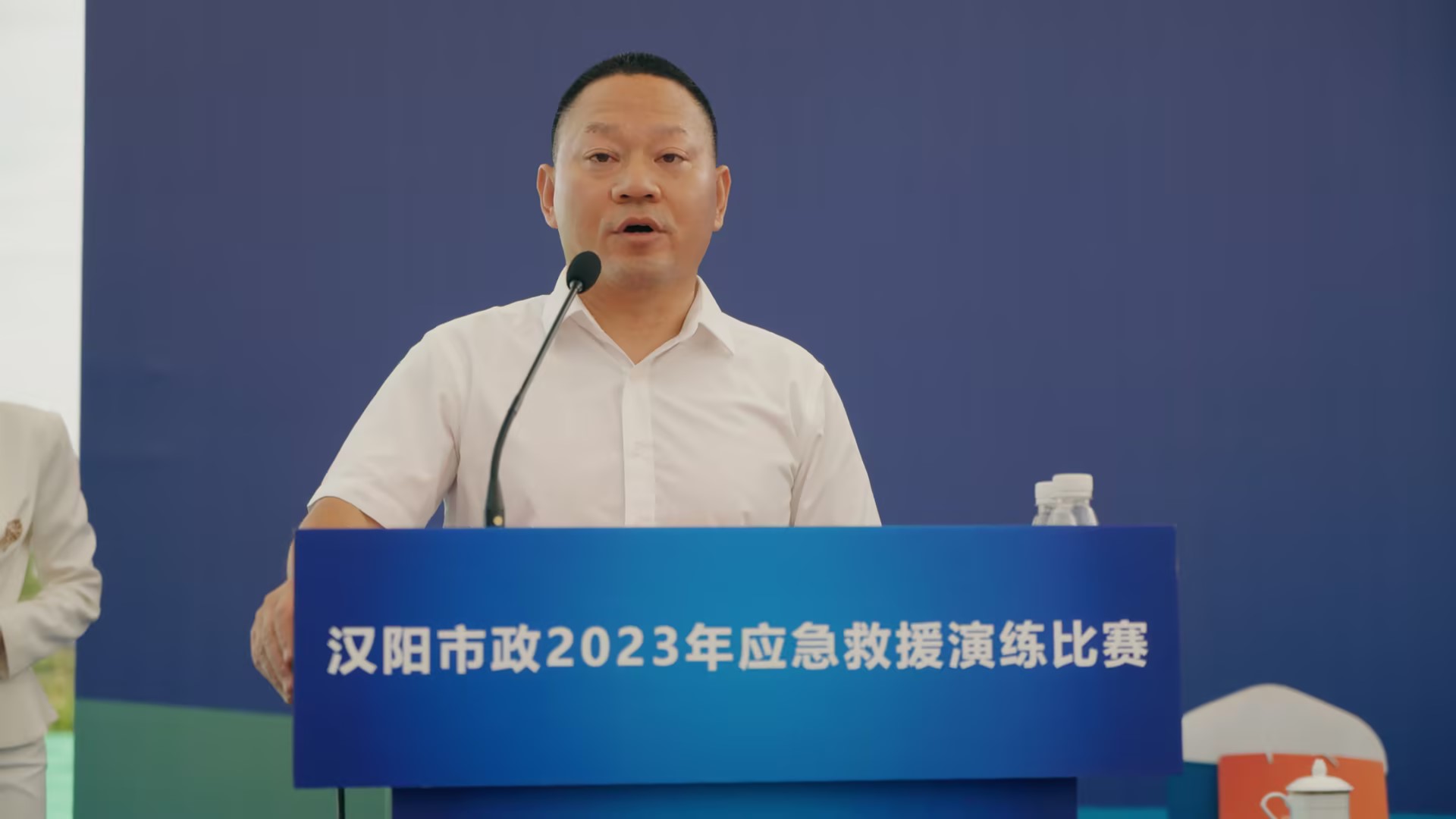 漢陽市政總工程師、演練活動總指揮荊武致辭。他提到,漢陽市政始終堅持“居安思危,穩(wěn)健拓新”的發(fā)展理念,堅持“安全生產(chǎn),自覺規(guī)范”的安全理念,強(qiáng)化安全生產(chǎn)管理,切實(shí)維護(hù)人民群眾生命財產(chǎn)安全。希望各參賽隊伍規(guī)范落實(shí)救援動作,加強(qiáng)協(xié)作,凸顯漢陽市政優(yōu)秀的安全管理和應(yīng)急救援水平。