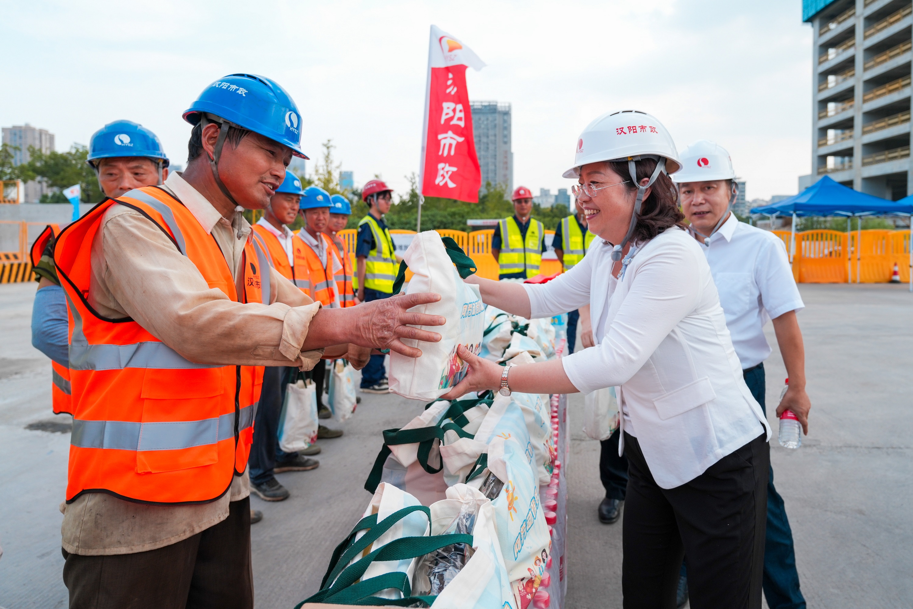 8月18日下午,武漢市總工會黨組書記、常務副主席王芳,經濟技術和勞動保護部部長趙林松,漢陽區(qū)總工會黨組書記、常務副主席李鐘,副主席陳新樹一行來到漢江南岸項目開展高溫慰問活動,為高溫下堅守一線的建設者們送去了礦泉水、鹽汽水、藿香正氣水等防暑降溫物資。漢陽市政黨委書記、董事長嚴悌文,黨委副書記、紀委書記冷雪陪同慰問。