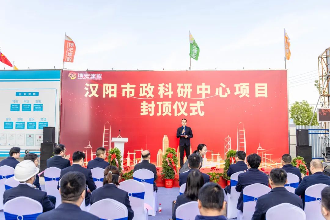 ? ? 2023年11月8日上午,漢陽市政科研中心封頂儀式在項(xiàng)目現(xiàn)場隆重舉行。漢陽區(qū)國資局黨組書記、局長嚴(yán)俊,漢陽區(qū)建設(shè)局黨組成員、漢陽區(qū)建管站站長王晟,漢陽市政集團(tuán)黨委副書記、副董事長虞志鵬,總工程師荊武等領(lǐng)導(dǎo),相關(guān)部門負(fù)責(zé)人以及項(xiàng)目一線建設(shè)者共計(jì)60余人共同見證項(xiàng)目封頂。