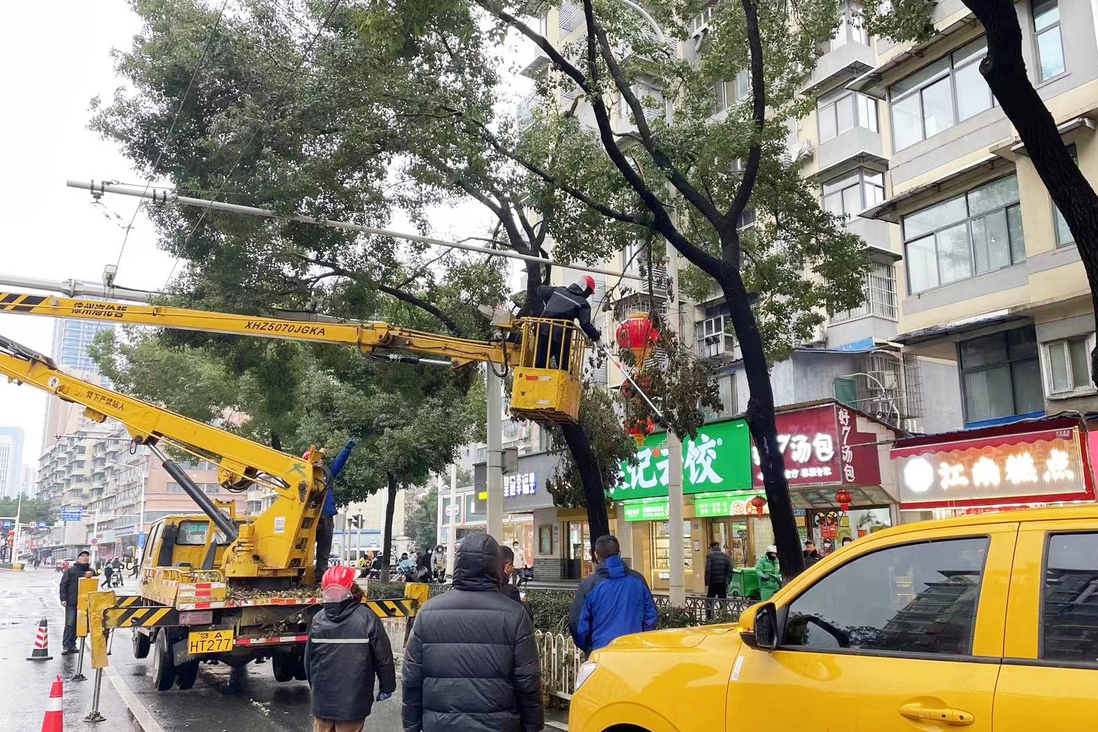 面對天氣預警,漢陽市政迅速響應,組織專班人員,配備高枝剪、油鋸等工具,調度升降車、運輸車前往琴臺大道、漢陽大道、龜北路等漢陽區(qū)主干道進行巡查并提前清理斷枝,排除安全隱患。自2月22日上午8時起,公司再次啟動24小時動態(tài)巡查機制,晝夜交替進行道路沿線巡查,發(fā)現斷枝情況及時組織車輛、人員進行清理,確保人行安全、道路暢通。