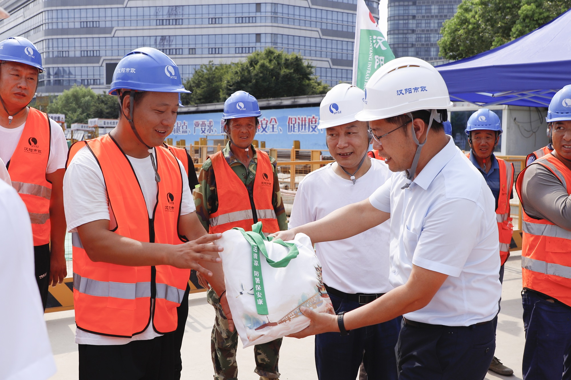 7月24日下午,武漢市總工會(huì)副主席劉斌,社聯(lián)部處長(zhǎng)鄧向軍,漢陽區(qū)委副書記、區(qū)政法委書記黃江波,區(qū)人大常委會(huì)副主任、區(qū)總工會(huì)主席周立強(qiáng),區(qū)總工會(huì)常務(wù)副主席李鐘,區(qū)總工會(huì)副主席陳新樹一行來到11號(hào)線四期土建工程第3標(biāo)段項(xiàng)目現(xiàn)場(chǎng)開展“工會(huì)送清涼”高溫慰問活動(dòng),為高溫下堅(jiān)守一線的建設(shè)者們送去了礦泉水、鹽汽水、藿香正氣水等防暑降溫物資。漢陽市政黨委委員、總經(jīng)理王智高,黨委副書記、紀(jì)委書記冷雪陪同慰問。