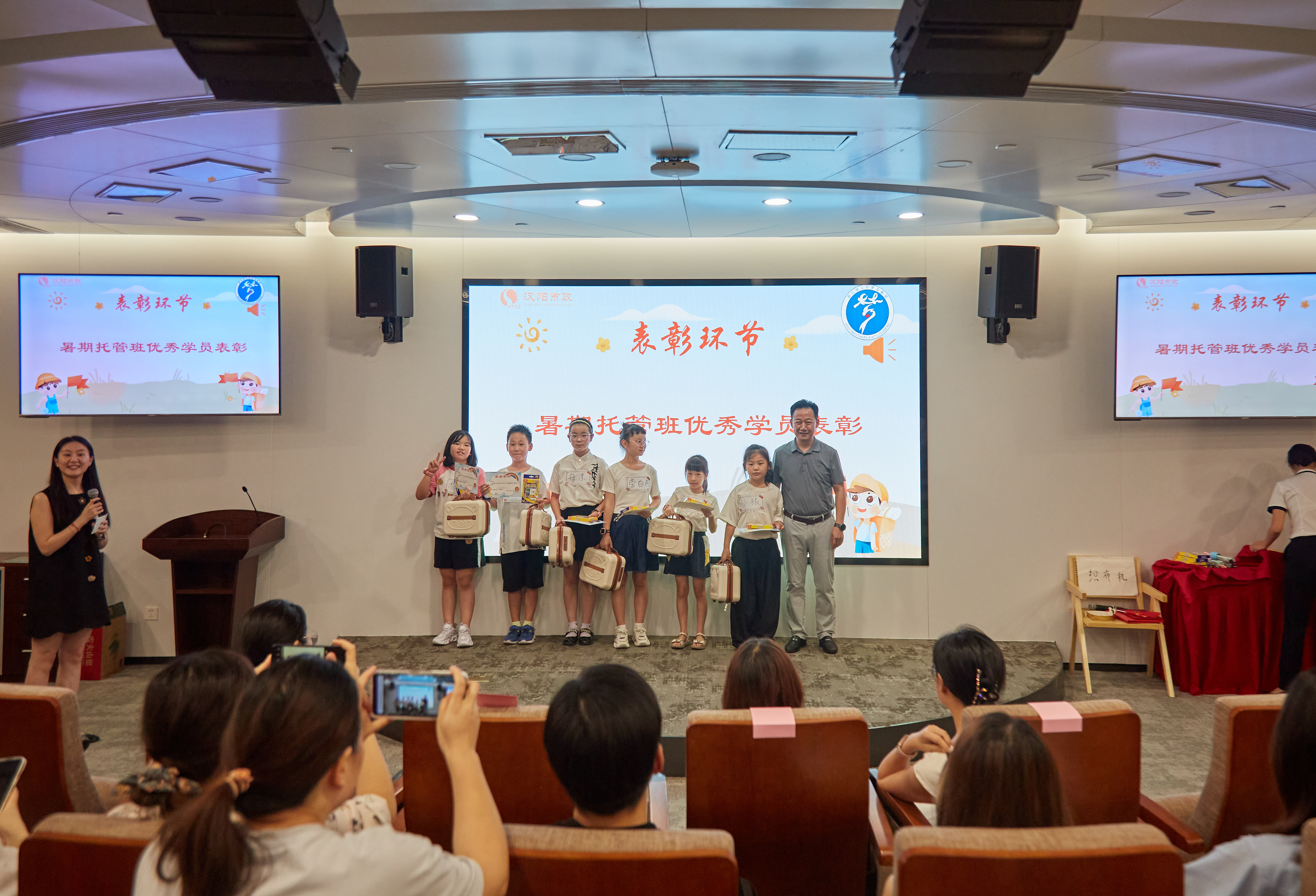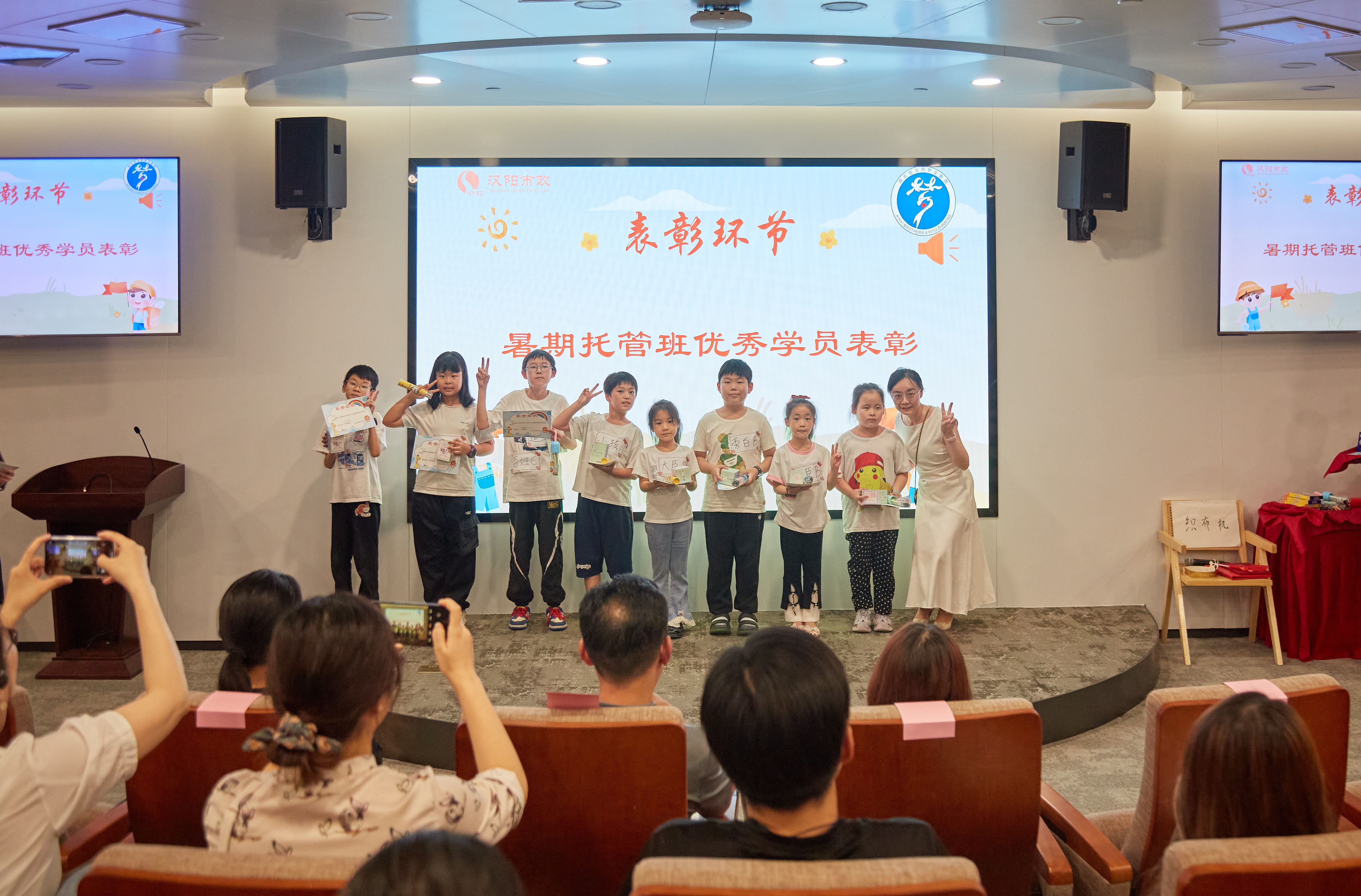 本次結(jié)營儀式的表彰環(huán)節(jié),共評選表彰了實(shí)踐小能手、勞動(dòng)小模范、學(xué)習(xí)小標(biāo)兵等32名暑托班成員以及1位最美大學(xué)生志愿者。