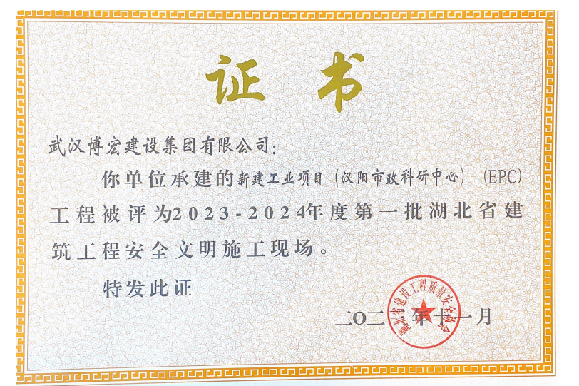 項(xiàng)目曾獲評(píng)“國(guó)家級(jí)綠色建造施工水平二星項(xiàng)目”“2023-2024年度第一批湖北省建筑工程安全文明施工現(xiàn)場(chǎng)”“2023年上半年武漢市建筑施工安全生產(chǎn)標(biāo)準(zhǔn)化示范工地”“武漢市建筑結(jié)構(gòu)優(yōu)質(zhì)工程”等多項(xiàng)榮譽(yù)。