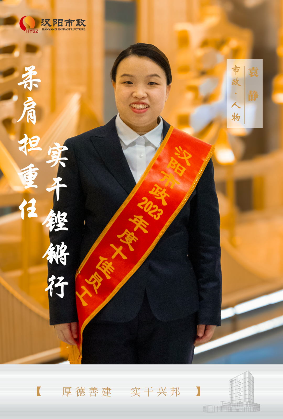 袁靜,中共黨員,注冊(cè)咨詢工程師(投資)、高級(jí)工程師。自2015年加入漢陽(yáng)市政設(shè)計(jì)公司以來(lái),她憑借扎實(shí)肯干的工作態(tài)度和卓越的工作能力,高效高質(zhì)完成了一件件工作任務(wù),入職九年,她從未停止過(guò)自我挑戰(zhàn),從市政設(shè)計(jì)領(lǐng)域的初涉,到經(jīng)營(yíng)、合約、資質(zhì)等多個(gè)領(lǐng)域的深度耕耘,在每一個(gè)崗位上,她都以高度的責(zé)任感和敬業(yè)精神,為公司的發(fā)展傾盡全力。2023年,獲評(píng)漢陽(yáng)市政第十二屆“十佳員工”榮譽(yù)稱號(hào)。