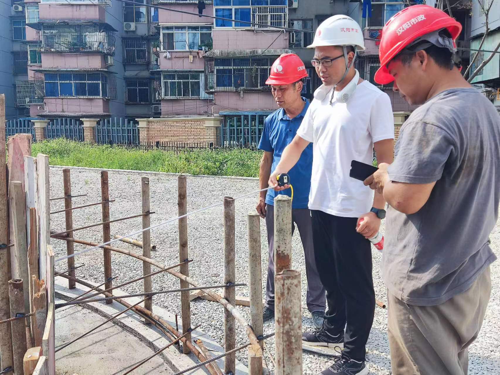 武昌生態(tài)文化長廊工程(友誼大道—建設(shè)十路)PPP項(xiàng)目涵蓋房建、園建、排水、橋梁、綠化、配套專業(yè)。由于項(xiàng)目涉及專業(yè)雜、技術(shù)覆蓋面廣,施工過程中往往會出現(xiàn)意想不到的問題。在緊鑼密鼓推進(jìn)工程之時(shí),肖超測量發(fā)現(xiàn),鐵軌立柱出現(xiàn)了不直順的情況。這個(gè)問題既影響景區(qū)美觀,也會導(dǎo)致景墻無法正常安裝,嚴(yán)重延誤工程進(jìn)度。團(tuán)隊(duì)嘗試了多種方案,但始終無法控制住鐵軌垂直偏差。