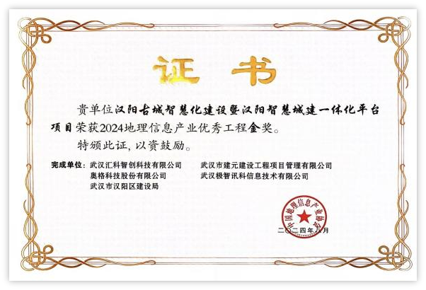 除本次榮膺“金標杯”特等獎,該項目在此前已獲得2024中國地理信息產(chǎn)業(yè)優(yōu)秀工程金獎、2023年武漢科技創(chuàng)新大賽月度分賽一等獎等榮譽,并入選住建部新城建展覽展示中心主展案例、2023年“中國建造”品牌創(chuàng)新實踐案例、中央網(wǎng)信辦2023年數(shù)字化綠色化協(xié)同轉型發(fā)展優(yōu)秀案例。